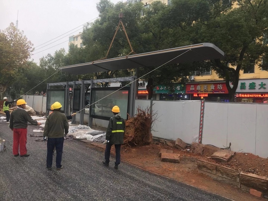 以下是此次鷹潭市候車亭裝車現場: