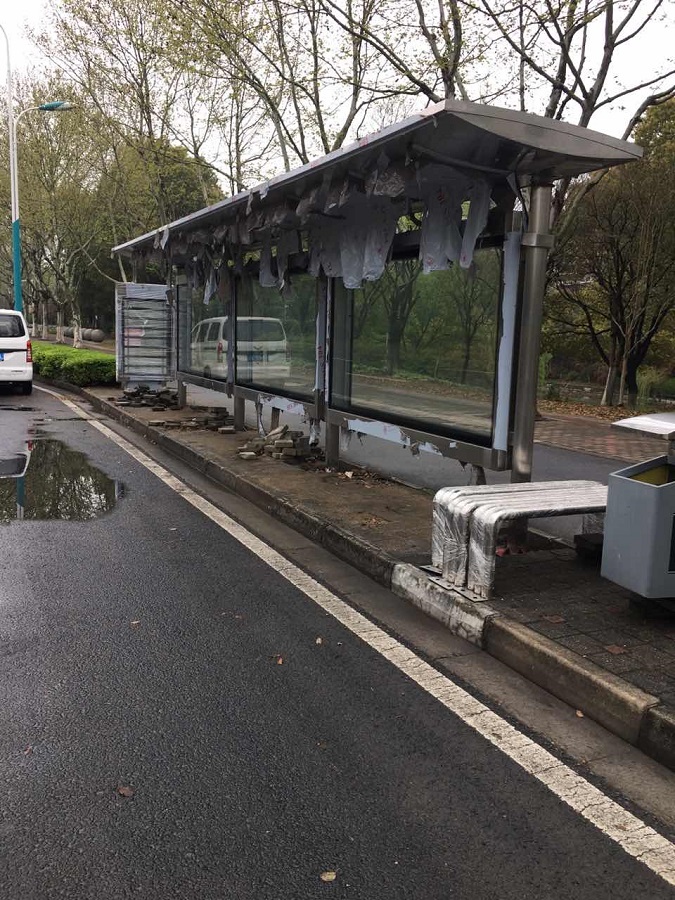 近期張家港在美城定制的公交候車亭成功發貨,安裝如下圖。